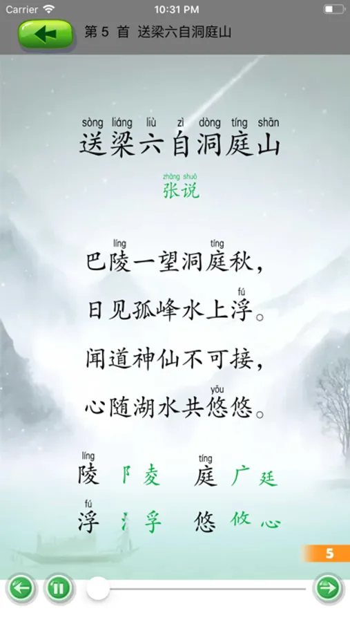 第5首送梁六自洞庭山(张说);