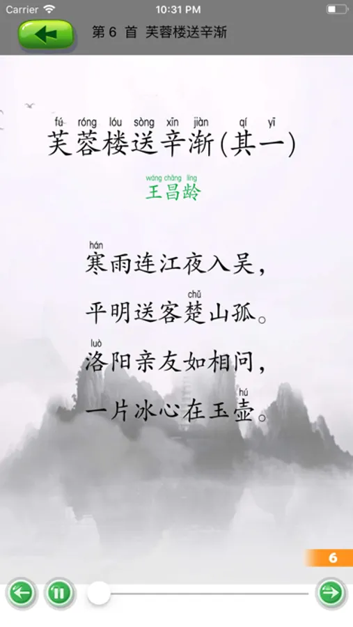 第6首芙蓉楼送辛渐(其一)(王昌龄);