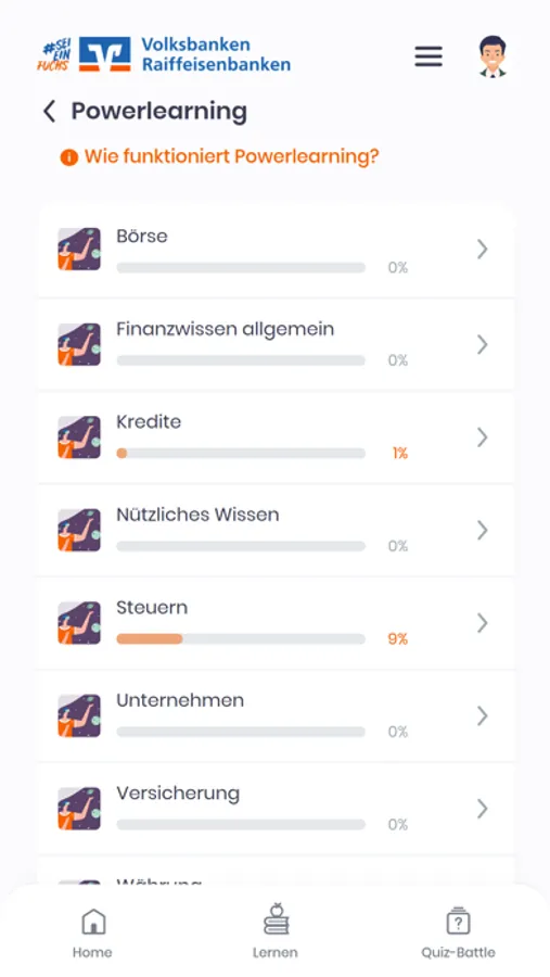 FinanzFuchs ist die Quiz-App der Volksbanken Raiffeisenbanken. Fordere