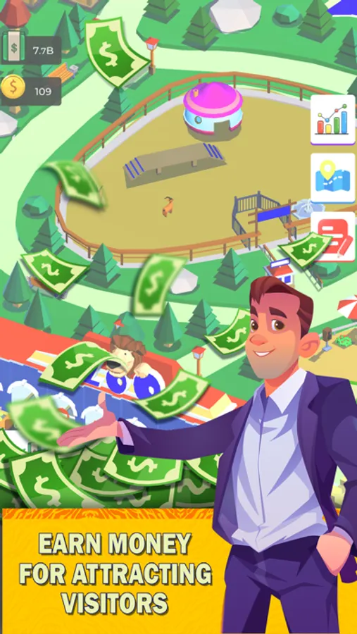 Hire new employees, improve the services and control almost every aspect of your park business. You will be pleasantly enjoyed by management and idle game mechanics.