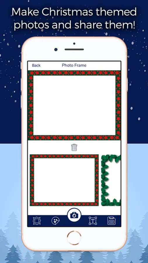 • With the photo frame, either take a photo or pick one from the gallery and add stickers, texts and make funny and exciting collages and share with loved ones