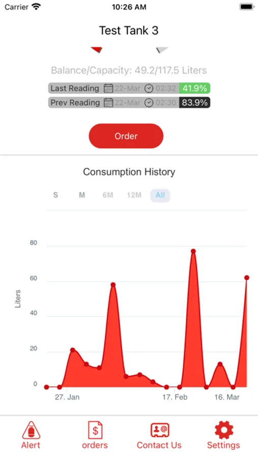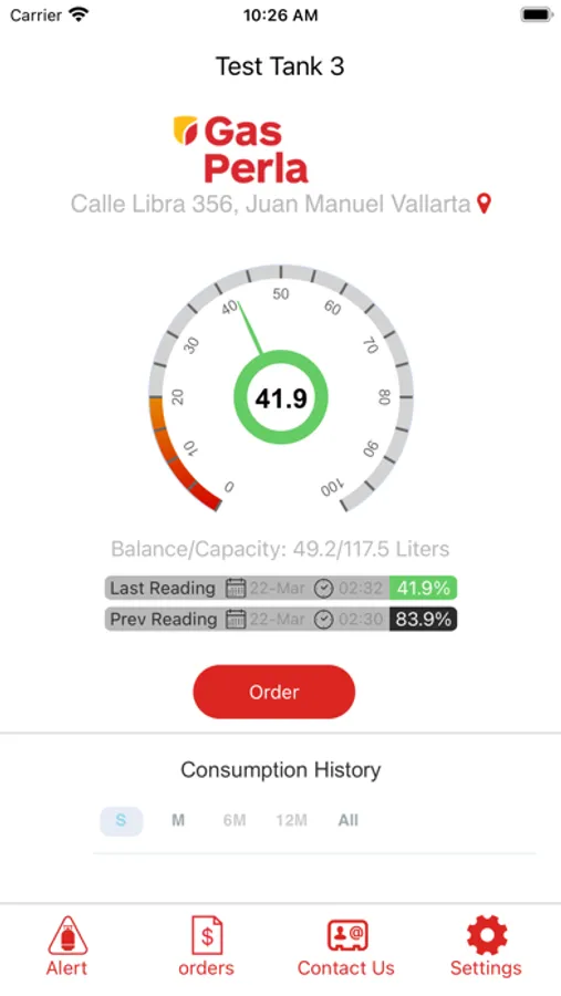 - Monitorear el nivel de gas en tu tanque estacionario (porcentaje y litros).