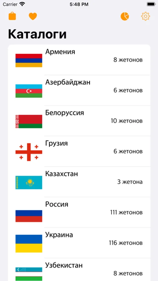 The application consists of catalogs of tokens of the countries of the world.