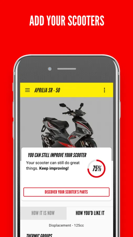 You can manage your vehicles in a Malossi perspective! You can tune them virtually in a dedicated garage, keep trace of the replaced spare parts and indicate those you would like to replace, with the mood you approach your vehicle.