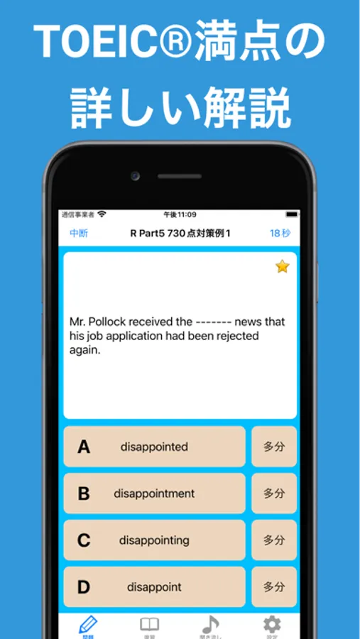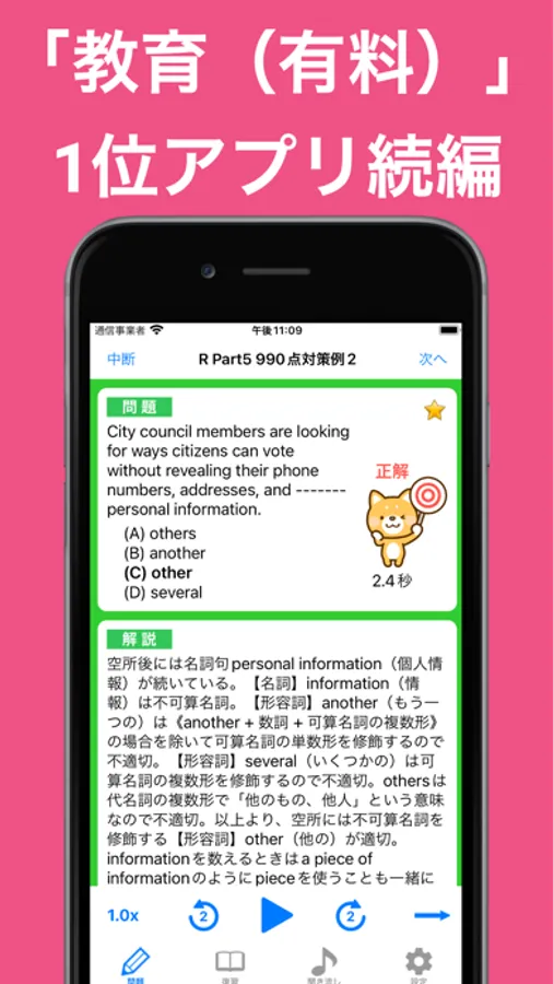 TOEIC®テスト対策アプリにありがちな不親切な解説や不自然な日本語にわずらわされることなく、一問一問しっかり理解しながら学習を進めることができます。