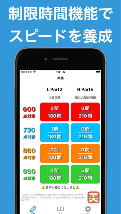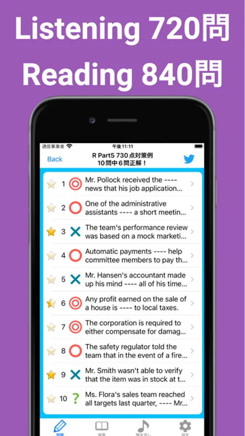 「学習の成果を測るためにTOEIC®テストを受検してみたいけれど、何から始めていいか分からない」という方は是非本アプリでPart2とPart5の勉強から始めてみてください。