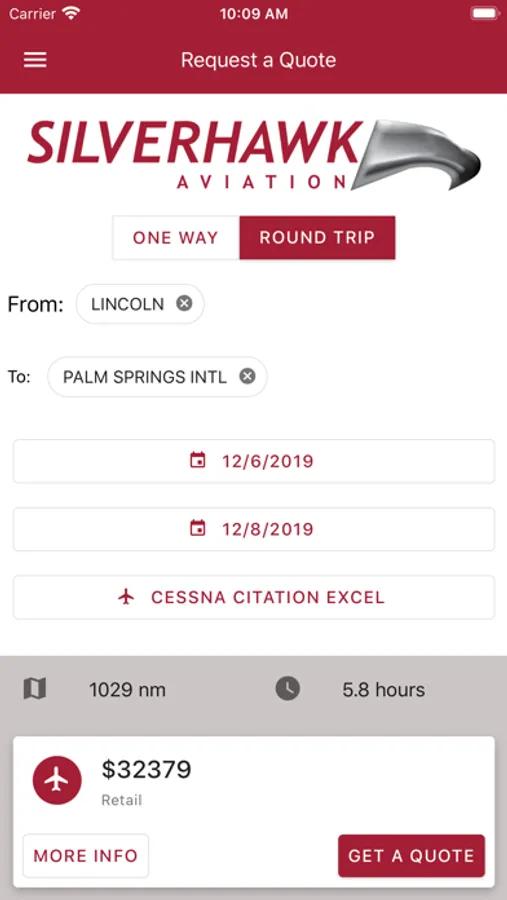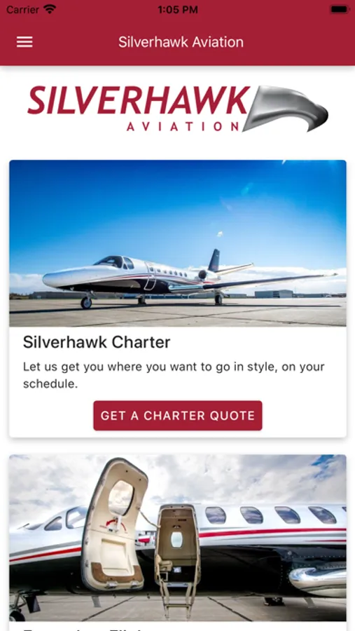 Get estimated pricing, request a quote, see empty leg flights, and check out our fleet right from the Silverhawk Aviation Charter app.