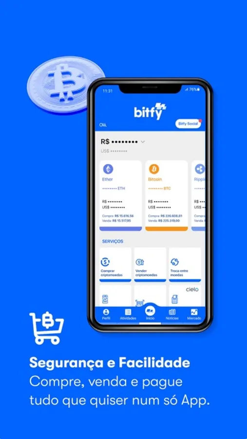 O Super App Bitfy é a maneira mais segura para armazenar e transferir as principais criptomoedas do mercado porque sua carteira digital multifuncional garante que os usuários são os únicos que têm acesso às chaves privadas. E a sua plataforma de tecnologia blockchain oferece uma série de soluções que facilitam a compra, a venda e o uso de criptomoedas no seu dia a dia.