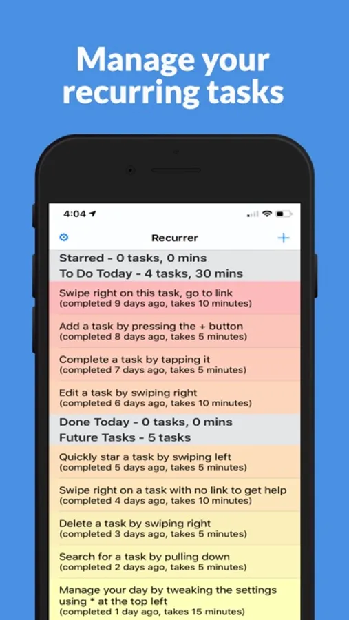 The more tasks you have in the recurrer app, the better it becomes at realistically managing your daily workload. So that's good news.