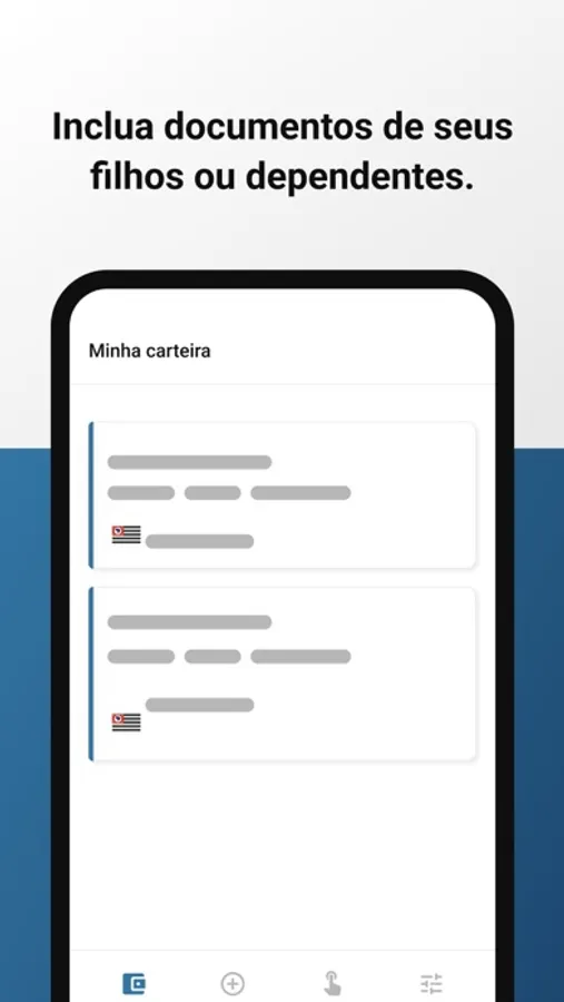 Inclusão e gerenciamento de documentos de identificação de filhos e dependentes no aplicativo;