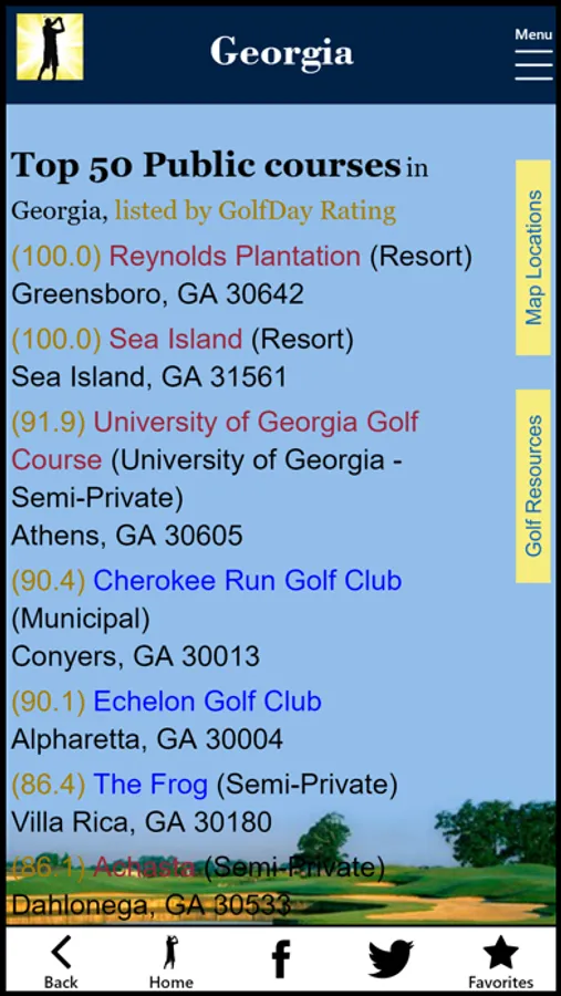 GolfDay Georgia includes over 300 courses in the state of Georgia, with GolfDay Rating and proximity search making it easy to find a great course near you or where you plan to be. Listings also include rates, booking links, course detail, golf leagues and junior golf information, mapping/directions and local weather. Don’t waste your valuable time at a Dog Track!