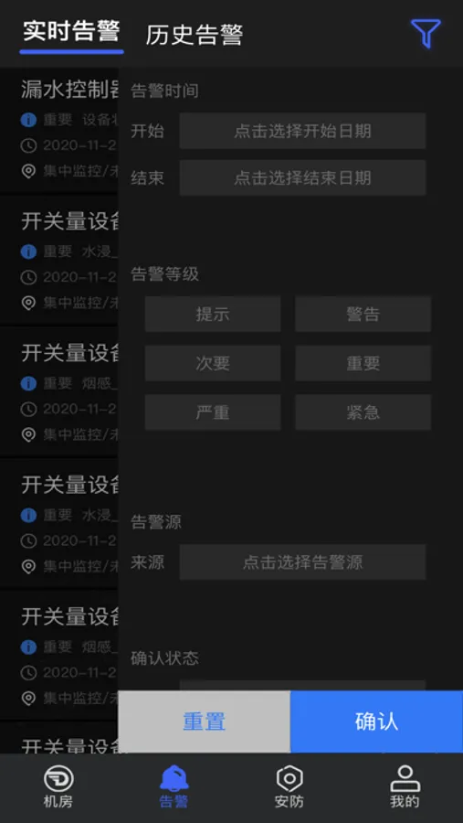 2、告警:当有设备告警时,会出现告警信息