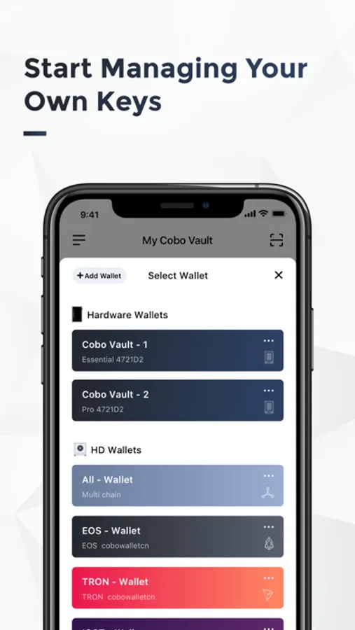 The Cobo Vault app is the companion app for the Cobo Vault hardware wallet. It also doubles as an HD software wallet you can use to generate and manage your own private keys.