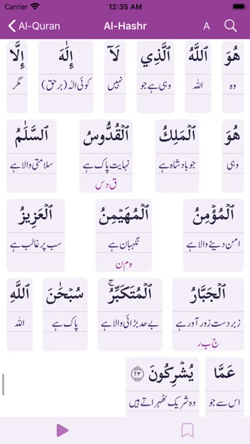 The app Learn Quran helps in developing a deeper understanding of the Quran through its translation and explanation by Dr. Farhat Hashmi. The app can be used to explore the Quran, memorize its word-by-word translation and gain an in-depth understanding of it by listening to the explanation of any of the verses.