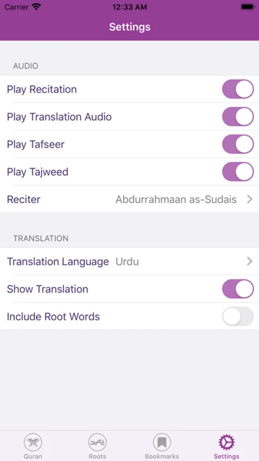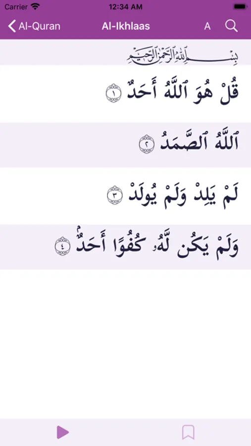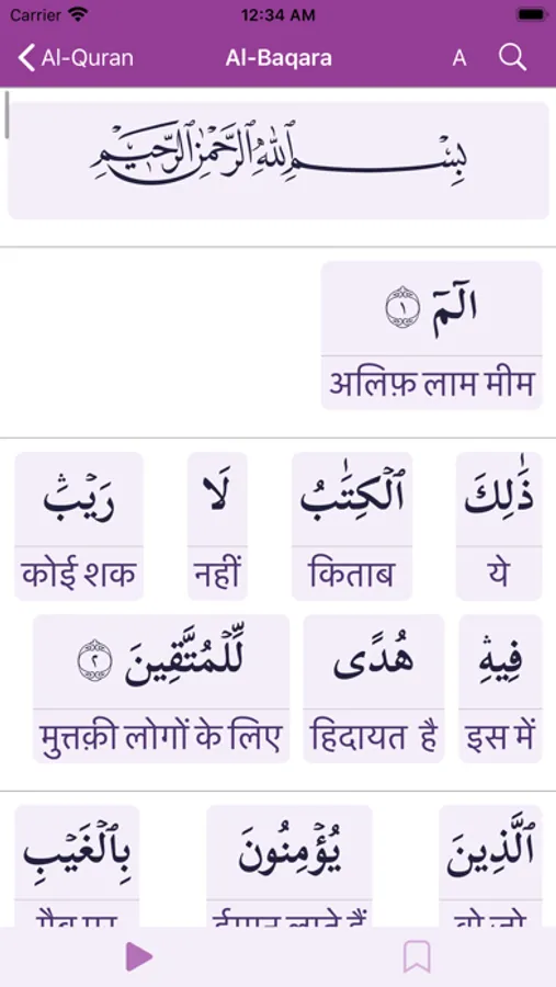 § Tap on any verse and press play button to listen to its audio translation, tafsir or recitation