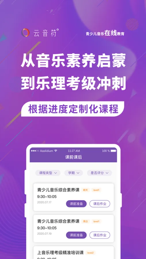 云音符CloudNotes是一家集“音乐+教育+科技”为一体的在线音乐教育平台,基于巴黎国立高等音乐舞蹈学院(CNSMDP)教学体系,为6-18岁青少年定制从启蒙到演奏的全阶段学琴体系,以个性化美育方式,多元化学习场景,全面激发孩子学习兴趣。目前云音符已打通线上真人互动教学、线下音乐教室入驻院校、国际音乐赛事举办、专业师资培训等全产业体系构建,全方位为大众提供音乐服务,用音乐艺术给未来加码!云音符独创「领鸣+ LIMIT+」音乐教育法,专注“逻辑力培养”“场景化教学”“方法论掌握”“国际链接轨”及“实践性体验”五大方向,全面激发音乐兴趣驱动的高效学习力。课程系统更具有专业的测评体系,数据化跟踪学习分析,云端教材及课件访问,以及个性化反馈和服务关注,让每一个云音符的学员都能获得因材施教的音乐教学,实现老师家长学生实时多维度连通。从小培养孩子们“能坚持、有自信、善于沟通协作、长于情感表达”等多方面的优良品质。云音符,孩子们触手可及的音乐世界!