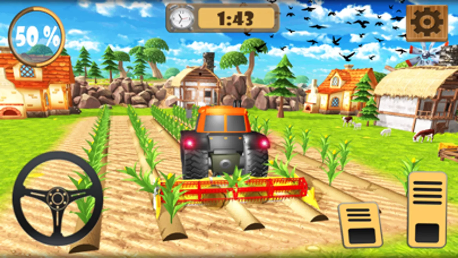Do you like to play tractor games or farm games, here is a great opportunity for you to be the best farmer in this farm simulator game? Enjoy this farm sim, build your ranch and a great township. This tractor driving simulator in farming games is the newest simulator game with various agriculture simulations. Enjoy new massive tractors and other farming machines to build up your little farmhouse in this amazing farming simulator game. Experience the farming life of a farmhouse farmer, transport wood, hay, and bales. This farmhouse tractor simulator will allow you to drive various farming machines, tractors, combines, trucks, trailers, seeders, and plows. Play the best farming simulation game and drive real tractors in this driving simulator. Create your own special and unique little family farm near the seaside and be the top farmer of this amazing township. This little family farmhouse tractor driving simulator is a fun farming simulation game. As a professional farmer, you can harvest various crops in this farm game. Play role like a real farmer of farming simulator. Drive a 4x4 heavy-duty farming tractor to plow the fields. Enjoy the virtual life of a happy village farmer. Construct your farmhouse, breed farm animals like cows, goats, chickens, ducks, horses. Manage big farms, enjoy countryside life, take control of fresh farms and fields. Cultivate and harvest crops like a real village farming sim expert.