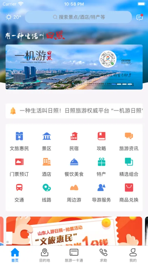 “一机游日照”智慧旅游服务平台是日照市文化和旅游局、日照公交能源集团联合打造的全市首个地域性旅游综合服务平台。平台以提升游客智慧化出游体验为出发点和落脚点,通过微信小程序、网站、公众号和手机APP(正式上线开通)四大服务端口,借助“智慧公交”建设成果,以服务游客为中心,打通全市旅游、交通线上线下资源,整合全域旅游、交通出行、市场监管、游客体验等模块于一体,实现“吃住行游购娱”各环节一机预定、一码通行、一键支付等智慧化服务功能。