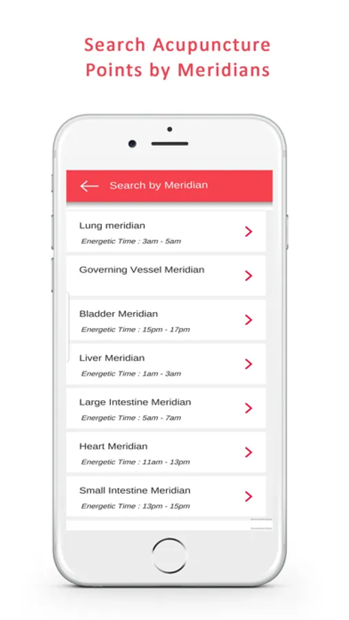 • Search points by meridian, and search points according to their names (nomenclatures: Pinyin, International, European).