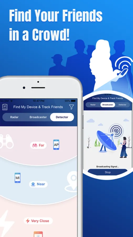• Use the app anytime you want to find your friends nearby in a crowded place, such as a train station, plaza, etc. Works indoors and outdoors!