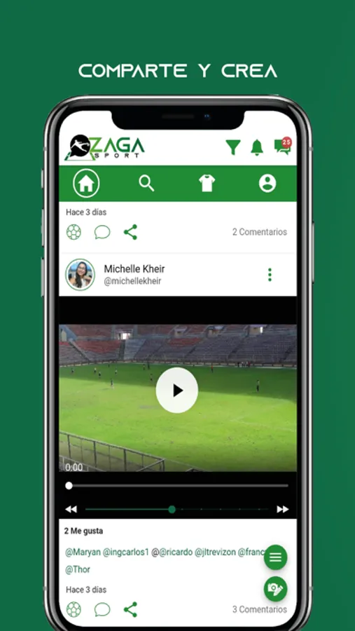 • Interactuar con likes, comentarios y menciones a usuarios o equipos.