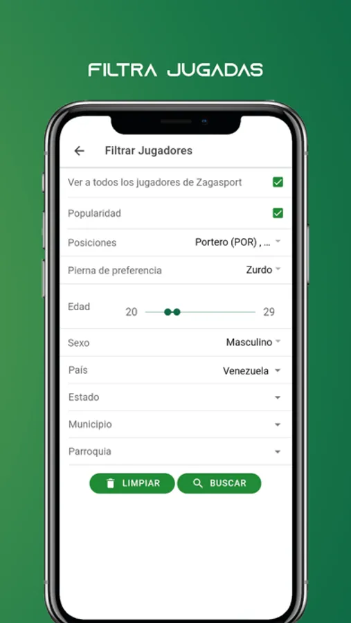 • A través de filtros puedes ver jugadores de tu preferencia según la posición, localización, sexo y popularidad; útil para reclutadores y para talentos en búsqueda de crecimiento.
