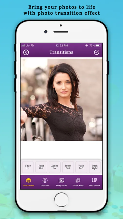 - Apply photo transition effects and speed