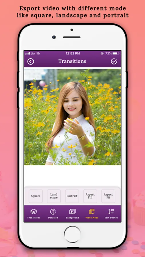 • Support different type of video output modes like square, portrait, landscape, aspect fit and aspect fill