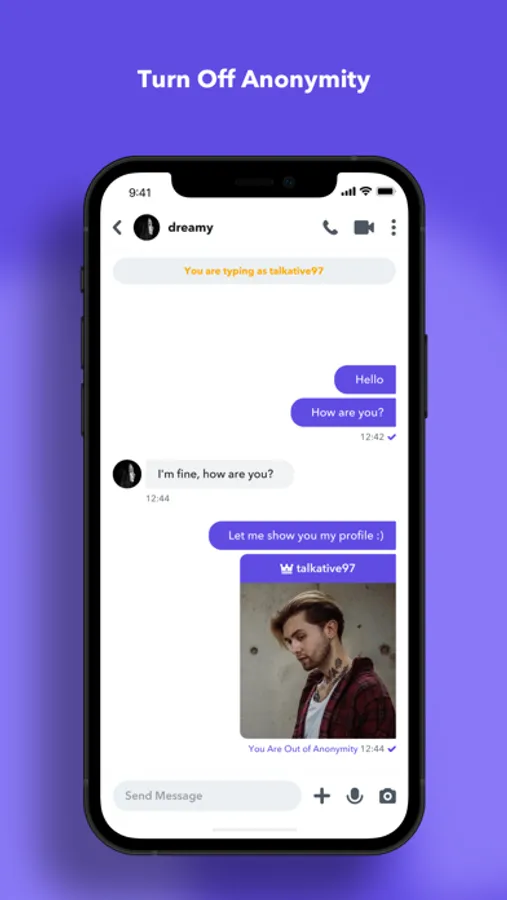 You are always anonymous and people you chat with will never see your profile unless you want to!