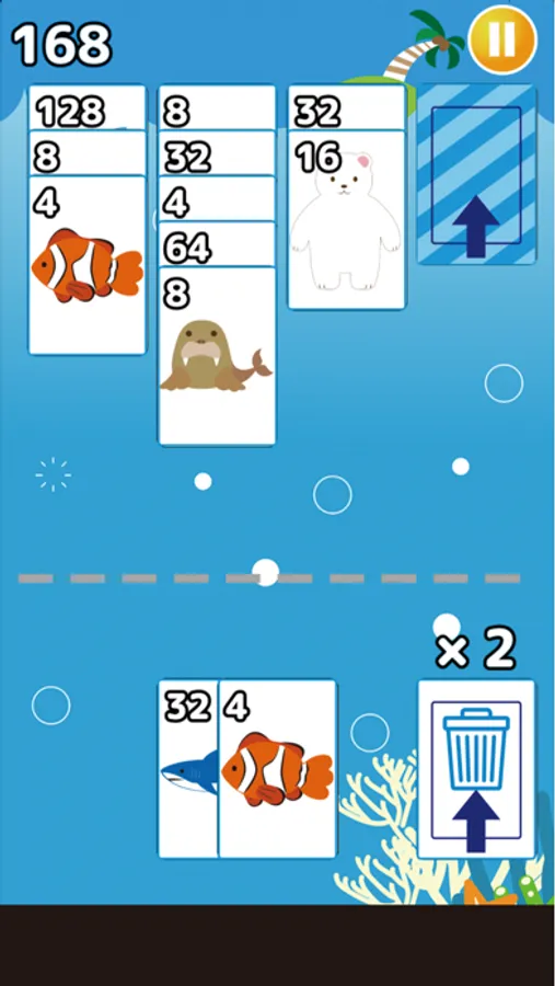 並べられるカードは1列に8枚まで、どんどん並べていろんなお魚たちに出会おう!