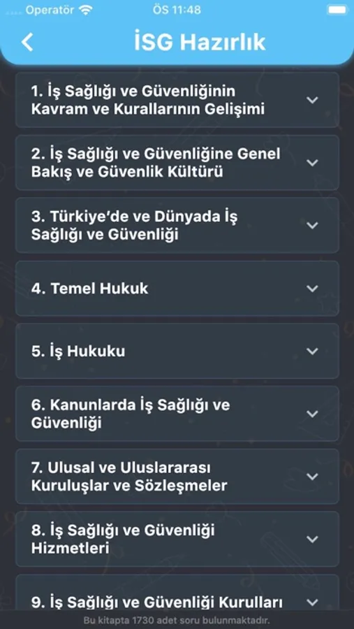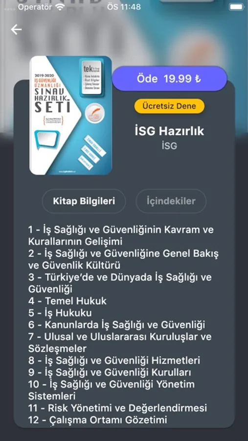 İSG Hazırlık Mobil uygulaması, İş Yeri Hekimliği ve İş Güvenliği Uzmanlığı Sınavına hazırlanan öğrenciler için hazırlanmış dijital eğitim platformu uygulamasıdır. İSG Sınavlarına hazırlayan eğitim kurumlarında da kullanılabilen uygulama sayesinde İSG sınavlarına hazırlanmak artık çok kolay. Özgün yazılımı ve tasarımı sayesinde pek çok kitabı ve binlerce soruyu tabletinize ya da cep telefonlarınıza taşıyor, İSG eğitimini hızlı, eğlenceli ve pratik hale getiriyoruz. Çözemediğiniz veya çözdüğünüz halde emin olamadığınız soruların cevaplarına video veya yazılı olarak uygulama içerisinden ulaşabilirsiniz.