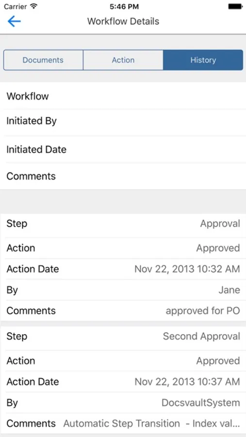 • Access your Docsvault Workflow tasks on your mobile device. Review your tasks, take ownership, delegate or perform required actions on tasks while on the move.