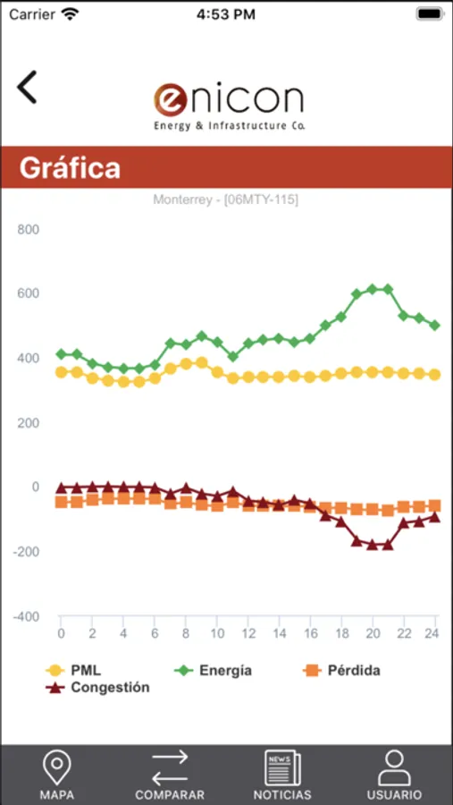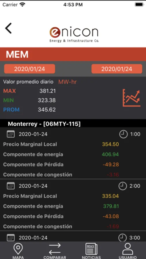 Aplicación para conocer el mercado eléctrico mayorista, histórico y actual.
