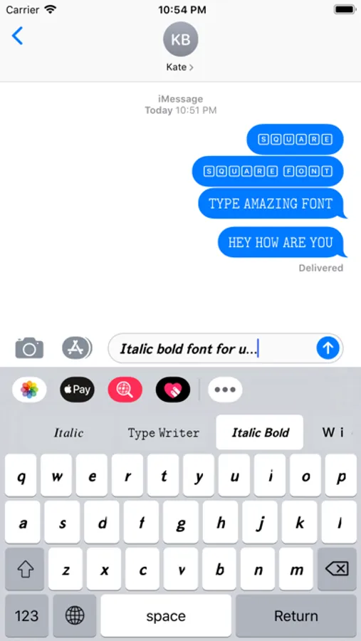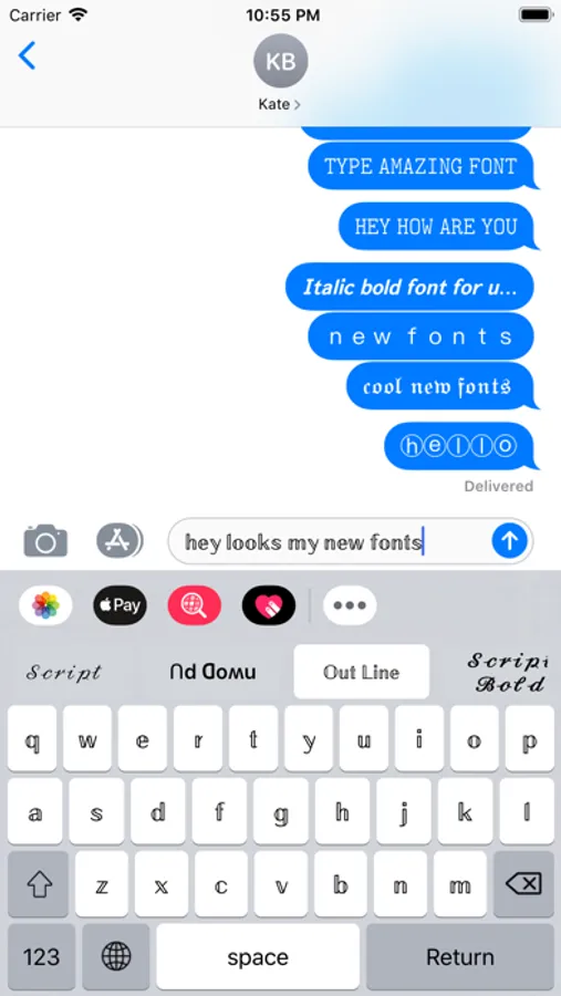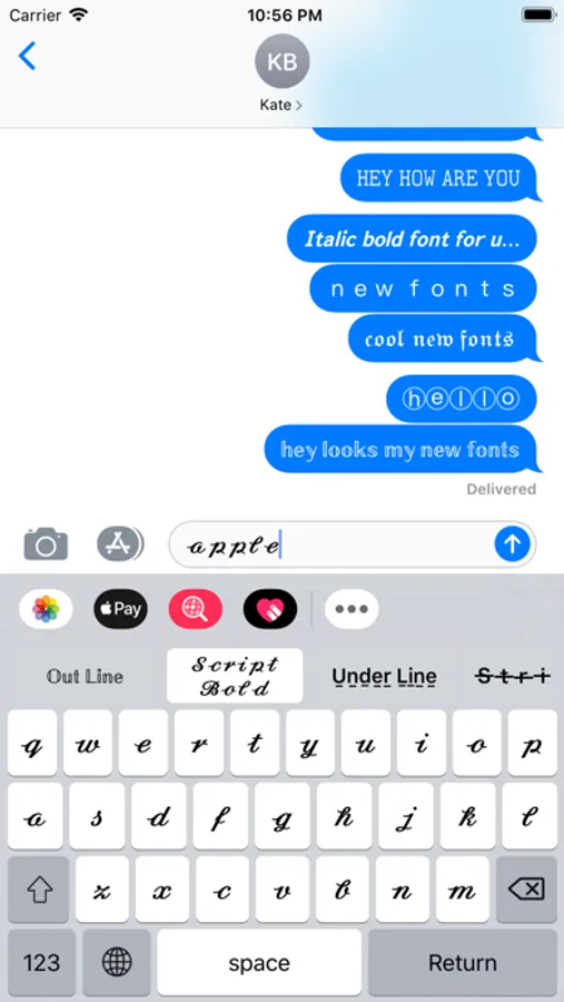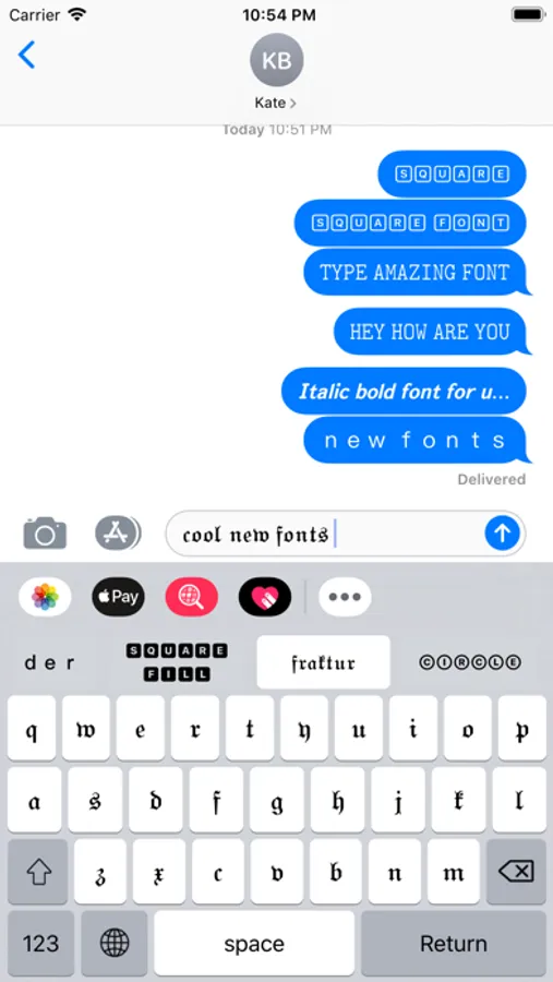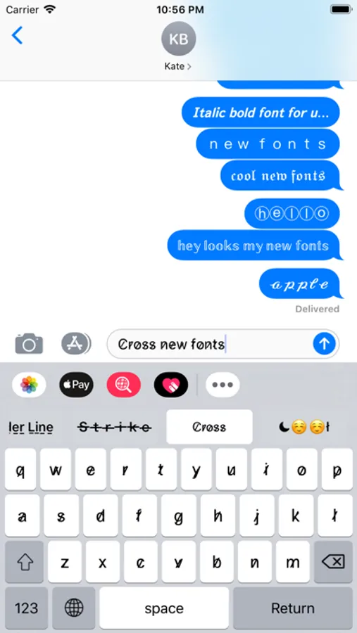 New fonts keyboard gives you more than 20 new amazing font which you never use before in your iPhone. Allowing full access to that keyboard you can use this new fonts in all application in your iphone like whatsapp, snapchat, facebook, wechat, instagram , Tiktok, messenger and many more apps!!!.