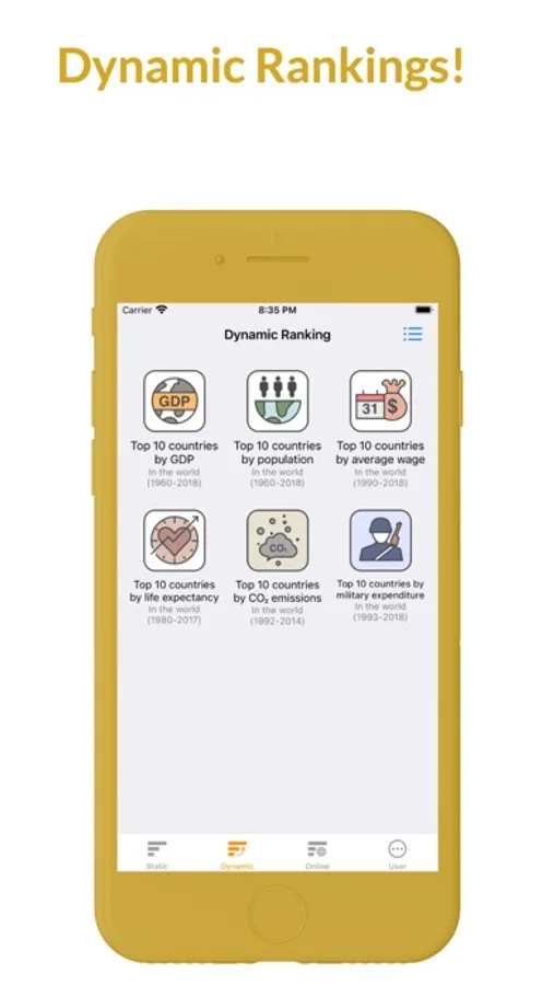 The dynamic rankings give an interactive way for users to see the changing of rankings in a given range of time.