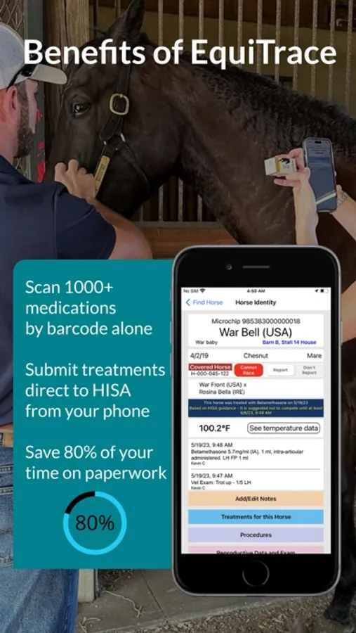 • Scan the horse prior to giving medication, the App will remind the user of medication due in that horse.