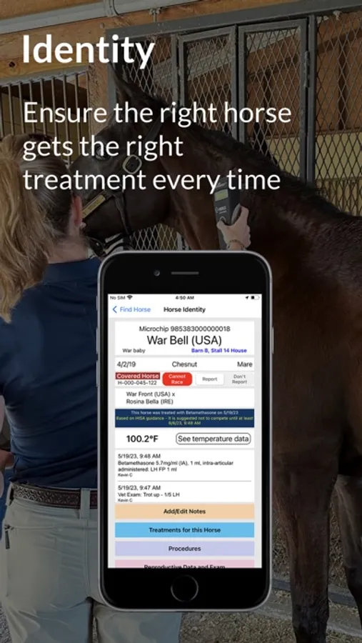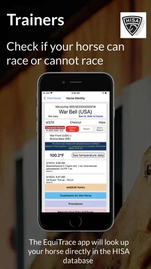 • Horses on the farm are searchable from the App, without having to scan them first.