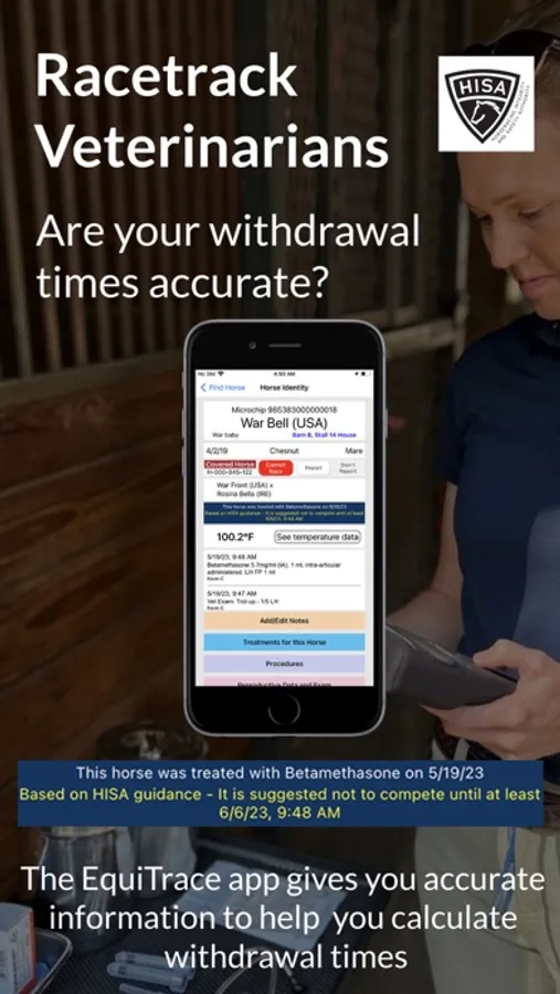 EquiTrace helps avoid medication errors. It supports rapid scheduling of treatments for horses, including providing suggestions regarding withdrawal times. Designed for rapid, accurate entry of treatments.