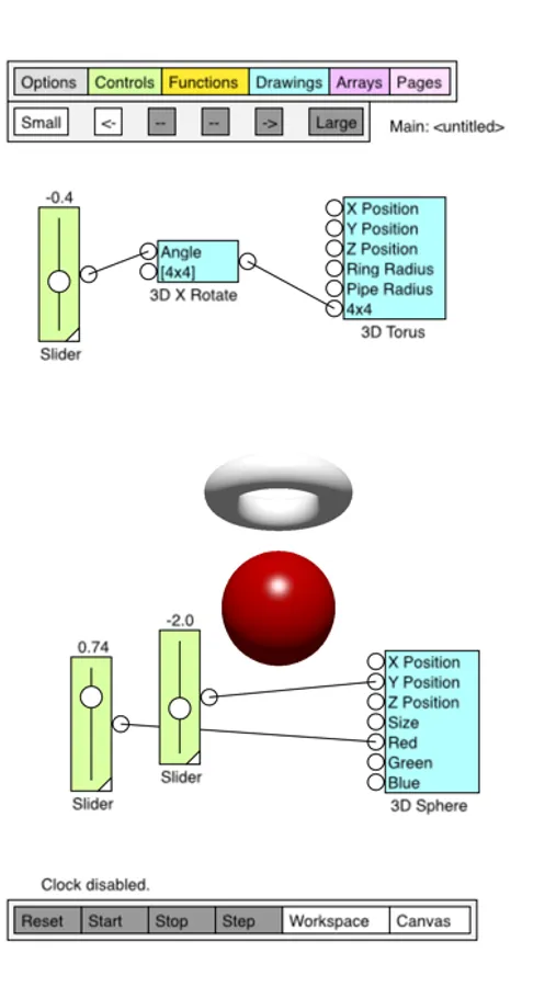 From simple components that can Add, Subtract, Multiply, and Divide to logic components that And, Or, and Not. Graphics to draw in 2 and 3 dimensions. And the ability to solve complex problems like the intersection of lines and circles to the Simplex calculator and Matrix inversion. Interactive components enable you to build Apps that hide the source and expose just controls and graphics.