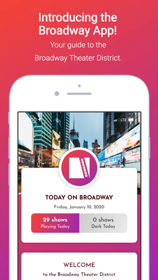 Welcome to the new Broadway App! Your guide to the Broadway Theater District. Now it’s easier than ever to find showtimes, theater locations, ticket pricing, and other information -- at home or during your visit to Broadway.