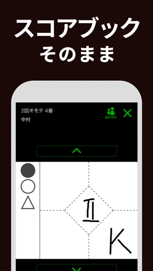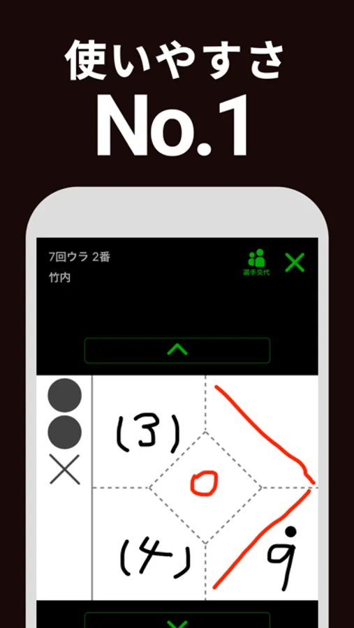 このアプリは野球用スコア記録アプリにおいて、最も直感的でダウンロードしたその日に使えるように設計されたものです。