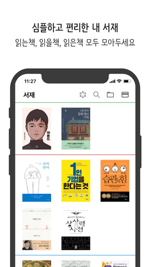 - 읽고 있는 책, 읽고 싶은 책, 다 읽은 책을 책갈피로 자동 구분