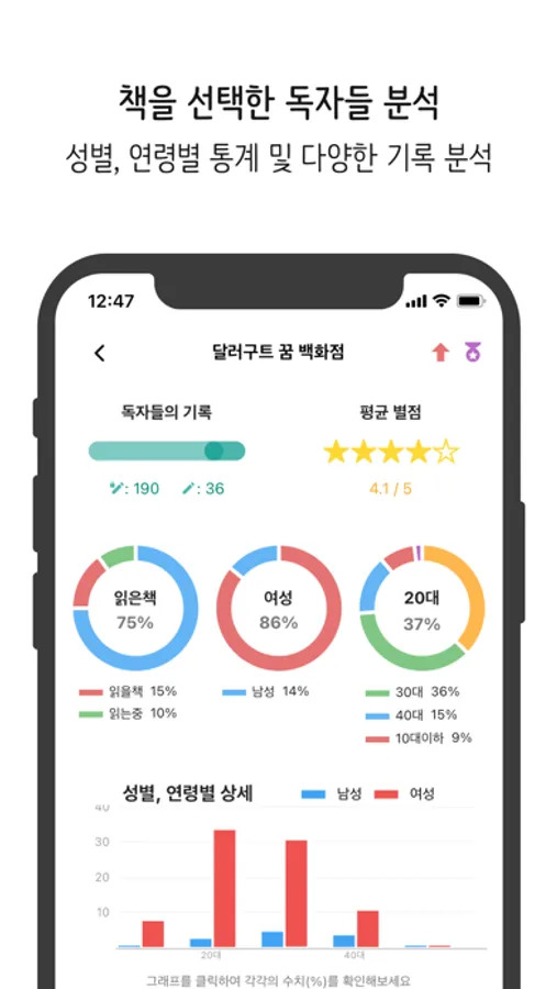 내가 보고 있는 책을 서재에 담은 사람의 성별과 나이대를 확인해보세요!