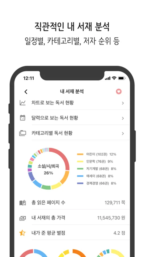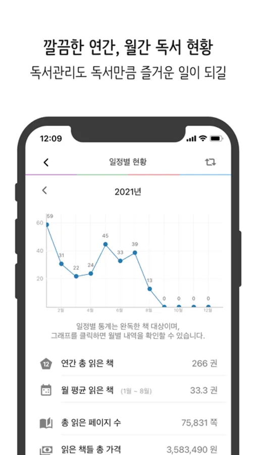 - 차트와 달력으로 만나는 연간, 월간 독서 통계 및 내역