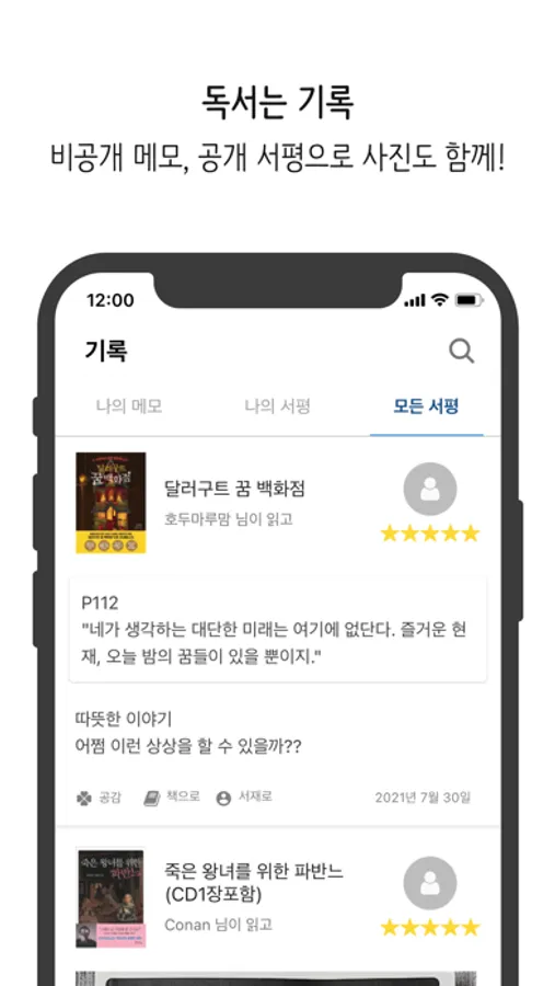 함께 보는 서평, 나만 볼 수 있는 메모 모두 기록해보세요!