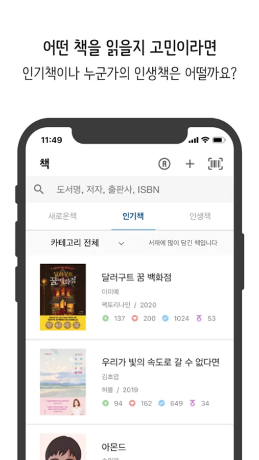 단순히 '많이팔린책'이 아닌 '많이읽힌책'들을 찾아보시고 나와 비슷한 서재들을 구경해보세요 ^^