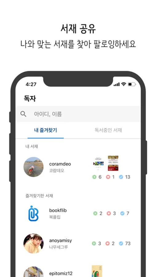 - 팔로잉, 팔로워를 통해 마음에 드는 서재 즐겨찾기