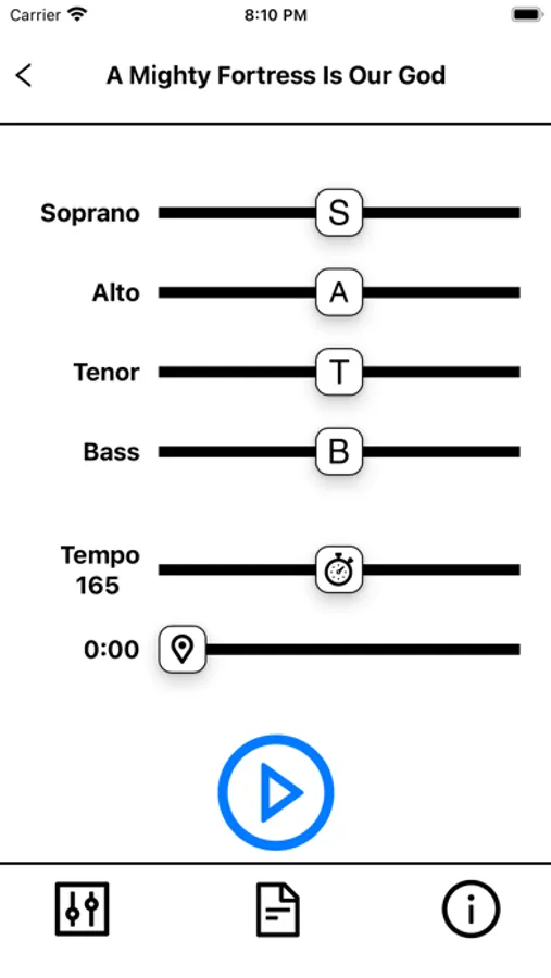 Sing Your Part helps you learn your vocal part for hymns. Select a hymn, adjust the volumes of the four vocal parts, and press play. It is that simple! Learning your part is now as accessible as reaching in your pocket. Owning a piano and having the skills to play it are no longer necessary to learn your vocal part. Listen and practice anywhere—while getting ready in the morning, while making dinner, or on the go. Plus, with Sing Your Part you can adjust the volumes of all voices so you can practice harmonizing with the other parts. Soon you will be able to sing hymns in a comfortable voice range alongside others singing different harmonies.