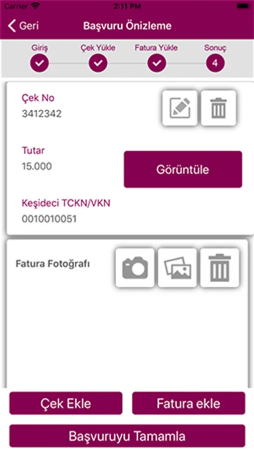 Çekinizin üzerindeki karekodu okutun, fotoğrafını yükleyin çek başvuru sonucunuz kısa sürede size ulaşsın.