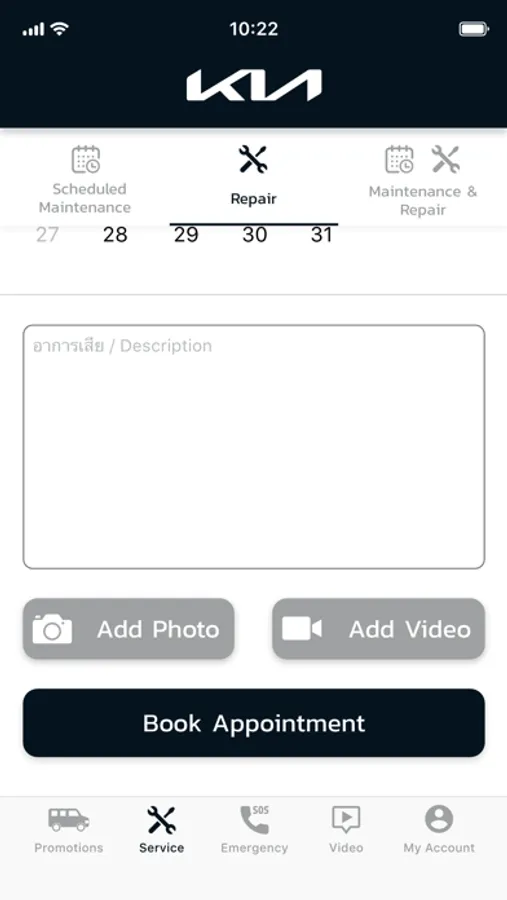 An application designed to provide better experiences for KIA Raminthra’s car owners when making service appointments.แอพพลิเคชั่นที่ออกแบบมาเพื่อให้ความสะดวกแก่ลูกค้าเกีย รามอินทรา ในการแจ้งซ่อมและนำรถเข้าตรวจเช็คที่ศูนย์บริการ